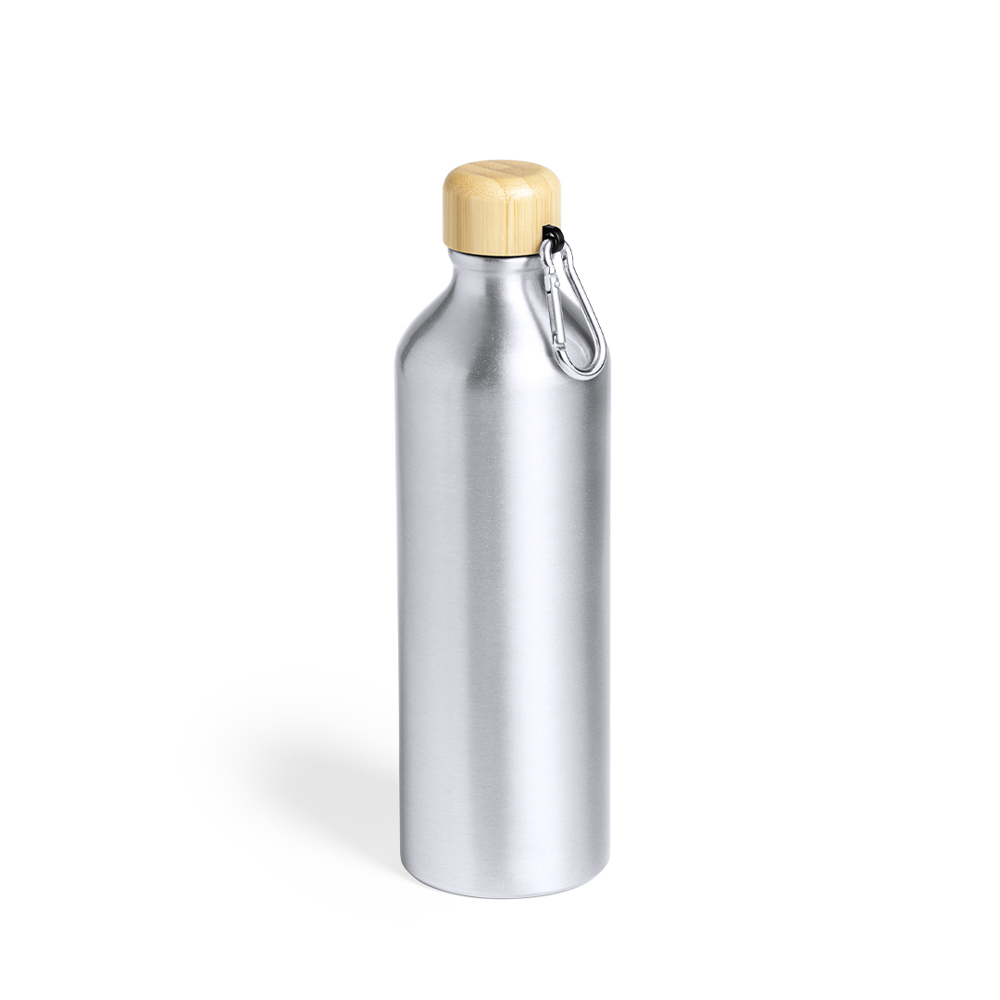 Nature line bottle with a capacity of 800 ml. Aluminum body with matte finish and bamboo lid with matching color carabiner for portability. BPA free and presented in an attractive eco-design box.