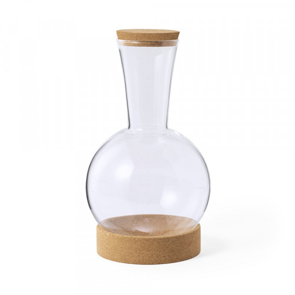 Nature line decanter made of borosilicate glass, with base and lid in natural cork. With a capacity of 1.7L and presented in an individual, eco-designed box.