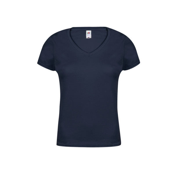Women's color T-shirt Iconic V-Neck by Fruit Of The Loom. Made in 100% brushed cotton Ring Spun 150g/m2. Soft touch and slim fit, with side seams designed for a perfect fit. Narrow 1x1 ribbed V-neck and matching placket. Easily removable label and available in a wide range of colors. Sizes XS, S, M, L, XL, XXL.