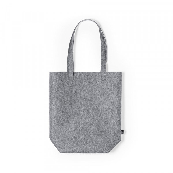 Nature line bag in resistant, recycled RPET felt. The result of the combination of the recycling processes of plastic materials along with the millenary technique of felt manufacturing, resulting in an eco-trend material that, in addition to being of recycled origin, also becomes recyclable. Rectangular design, with gusset at the base, extra long and extra wide reinforced handles (70 x 3.5 cm). Resistance up to 6kg, with RPET emblem on outside label.