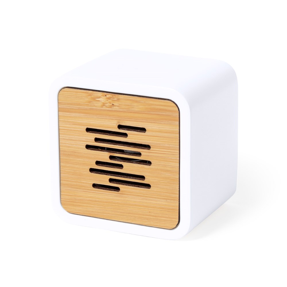Nature line speaker with Bluetooth® 5.0 connection. Made from a combination of bamboo and PLA -Poly Lactic Acid-, which is obtained from 100% natural resources such as corn starch, yucca or sugar cane, able to become 100% compostable at the end of its lifespan. 3W power, with hands-free function and rechargeable via USB cable -included-. Presented in an attractive eco-design box. With PLA emblem on the item.