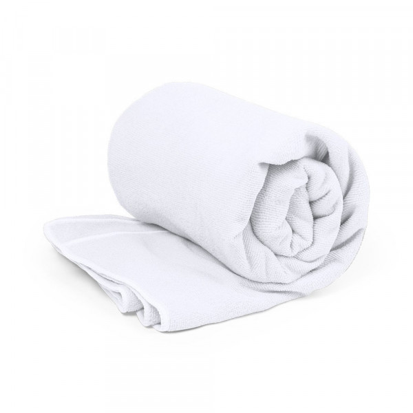 Nature line, absorbent towel in RPET 310g/m2. Made from recycled plastic to promote the reuse of plastic waste and contribute to the sustainability of the planet. Size 90x170 cm and available in a wide range of colours. With RPET logo on the label.
