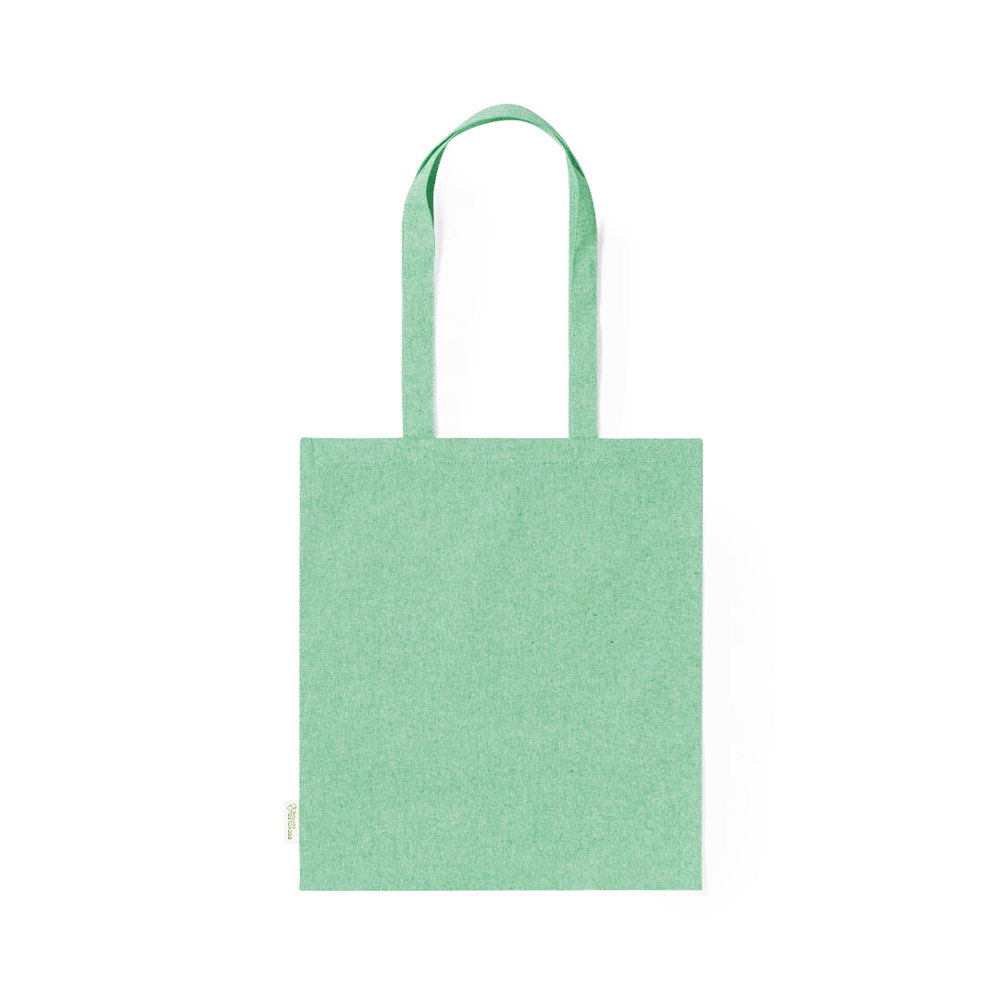 Bag made of recycled cotton material 140g/m2. GRS (Global Recycled Standard) certification, which guarantees the recycled origin of the material used to manufacture the product. Stitched finish, with 70 cm in lenght, reinforced handles, and available in a wide range of colours. Resistance up to 8kg, including recycled cotton emblem on label.
