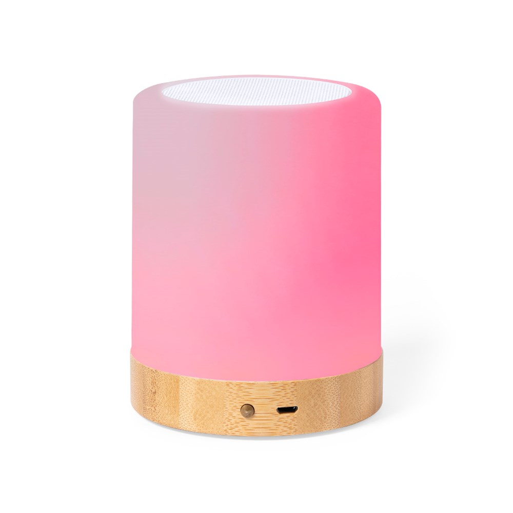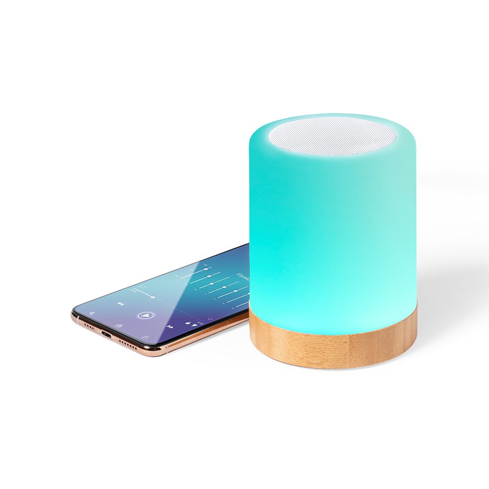 Nature line speaker, made from a combination of bamboo and resistant ABS. With Intelligent LED Technology and Bluetooth® 5.0 connection. Thanks to the ILT Smart LED Technology, you only have to press with your fingers on the top of the speaker to change the colour and intensity of the LED light as you wish, combining the 4 available light positions. 3W power and non-slip rubber feet on the base. Presented in an attractive eco design box.