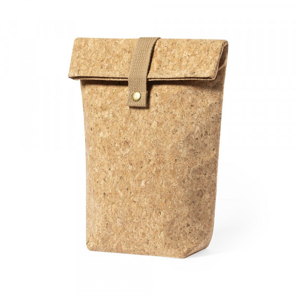 Nature line cooler bag made of cork, to promote the use of natural raw materials and contribute to the sustainability of the planet. Main compartment with cotton band and button closure. Isothermal inside, with aluminium finish.