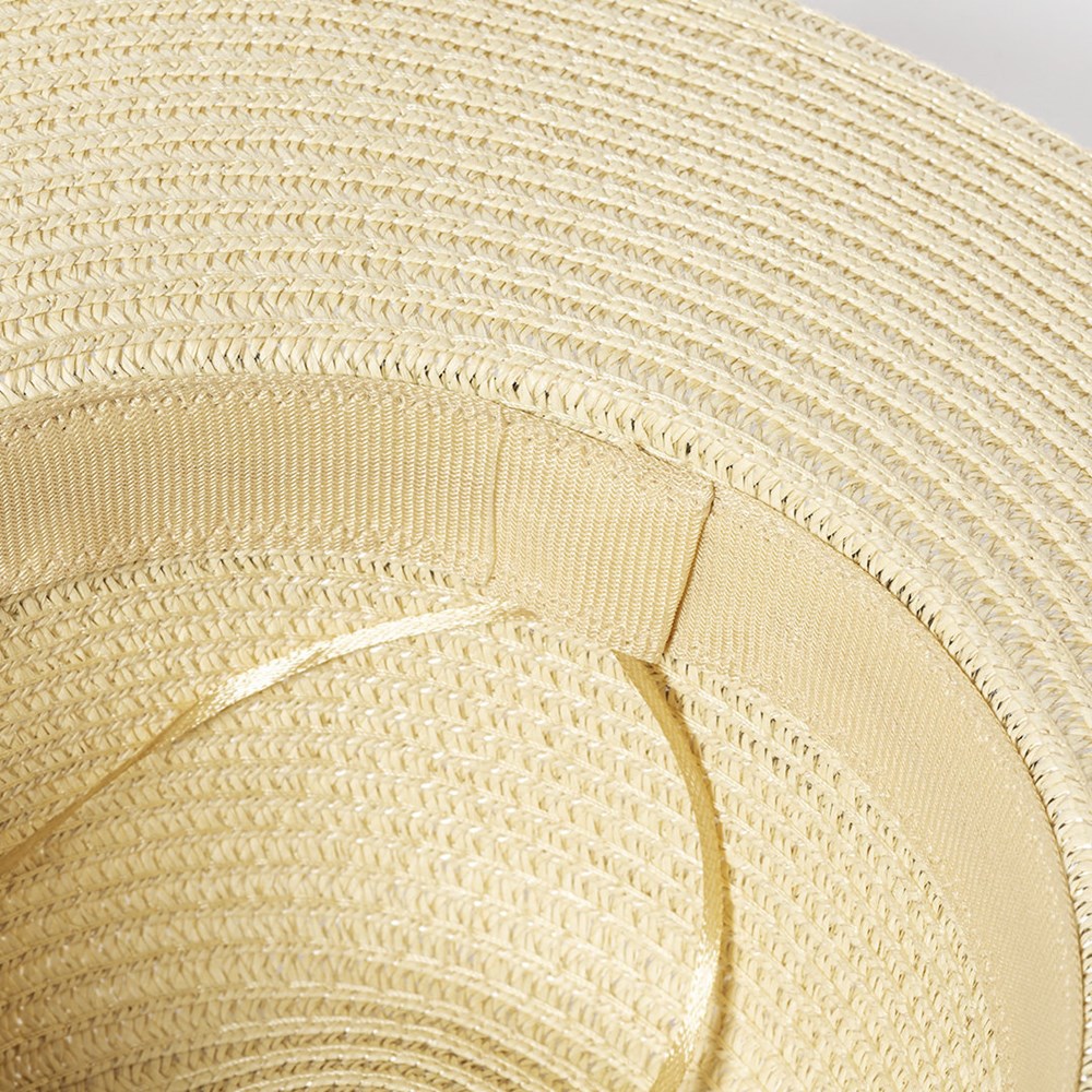 High-quality, wide-brimmed hat made of synthetic material with natural finish. Adjustable from the inside, with outer band and comfortable inner band. Available in a wide range of colours.