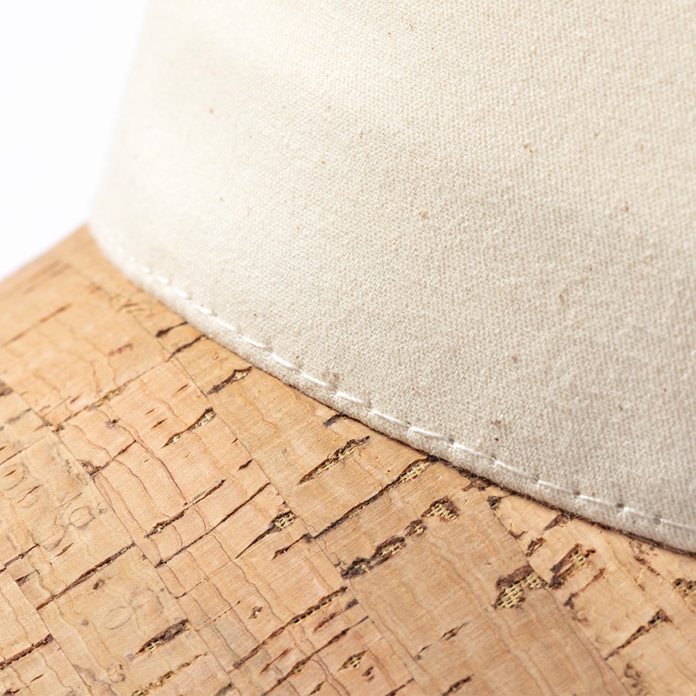 5-panel nature line cap made of organic cotton, with a natural cork visor. With adjustable velcro closure.