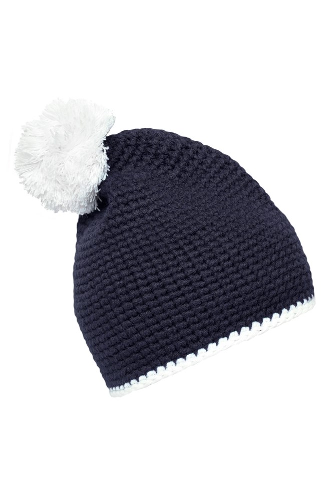 Pompon Hat with Contrast Stripe