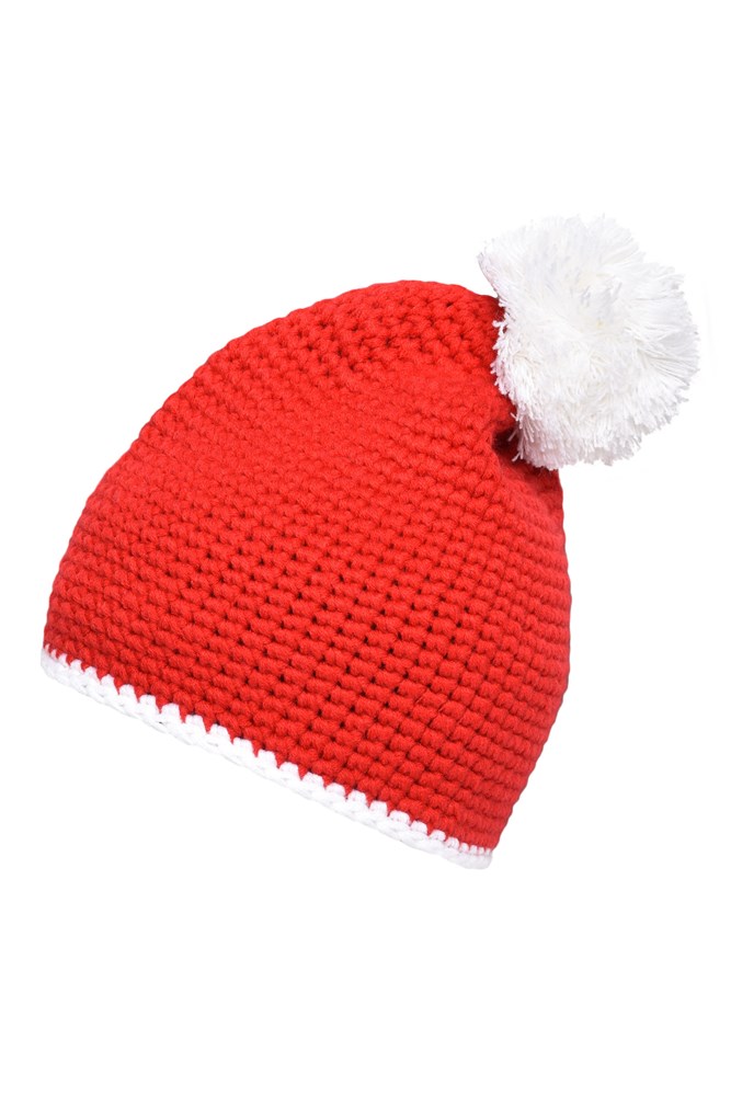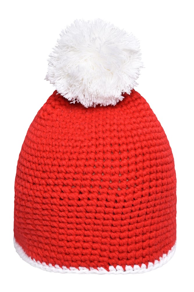 Pompon Hat with Contrast Stripe