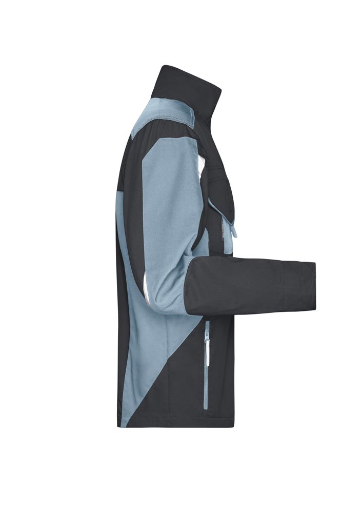 Sturdy and durable mixed fabric Stand-up collar with soft fleece inside Shoulder part reinforced with CORDURA® Full-length under-panel front zip with strom flap Warm cuffs inside Spacious ventilation openings at the back Side pockets, breast pocket and zipped inner pocket Breast pocket with flap, mobile phone pocket inside Reflective details (without protective function/no PPE) at the front and back Washable at 60°C, suitable for tumble-drying 1/2 chest: 60 cm 1/2 bottom width: 56 cm front length from shoulder: 69 cm length back from shoulder: 71 cm sleeve length: 64,50 cm Work-Level: STRONG OEKO-TEX® Standard 100 (15.0.70467) Plus size Up to 6XL Washing Temperature 60°C CORDURA® Breast pocket YKK-Zipper