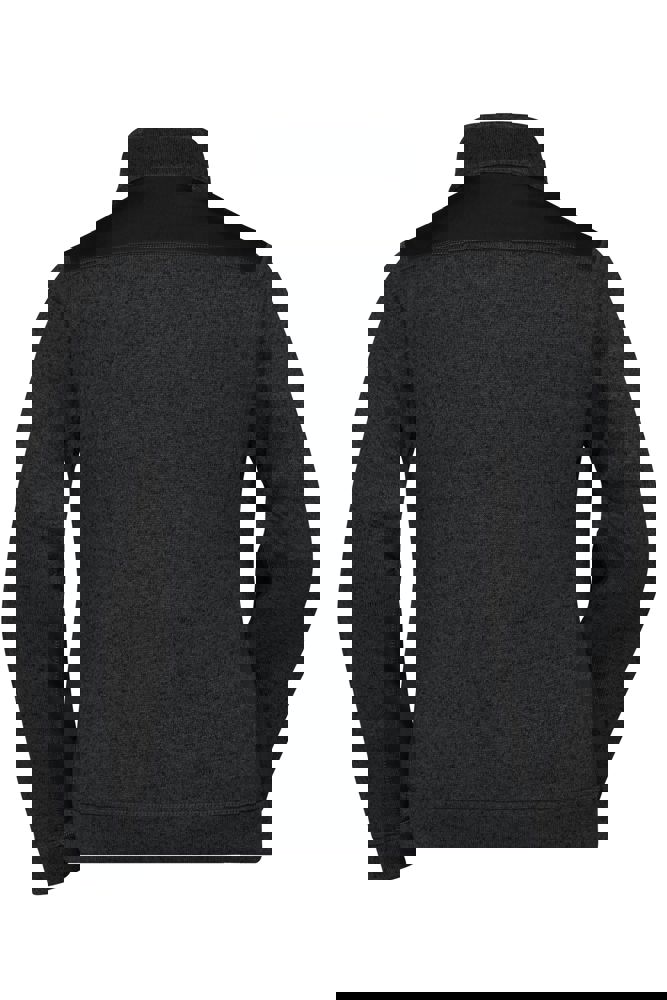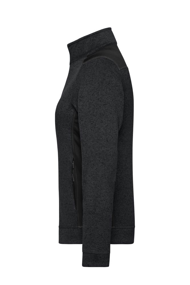 Warm, soft, easy care fabric in melange look Outside knitted look, inside roughened, soft and fluffy Elastic softshell insets on sides, shoulders and sleeves 2 side pockets with concealed zip Stand-up collar Full-length under-panel zip with chin cup Zips: YKK JN861: lightly waisted 1/2 chest: 46 cm 1/2 waist width: 42 cm 1/2 bottom width: 47 cm length from shoulder: 64 cm sleeve length: 61 cm Work-Level: STRONG OEKO-TEX® Standard 100 (15.0.70467) Plus size YKK-Zipper