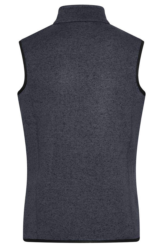 Soft, warm, easy care fabric in melange look Outside knitted look, inside roughened, fluffy and soft Figure-hugging division seams Lateral zipped pockets, breast pocket Contrasting inset on hem and armhole 1/2 chest: 50 cm 1/2 waist width: 46 cm 1/2 bottom width: 50 cm length from shoulder: 64 cm OEKO-TEX® Standard 100 (15.0.70467) knitted fleece stand-up collar