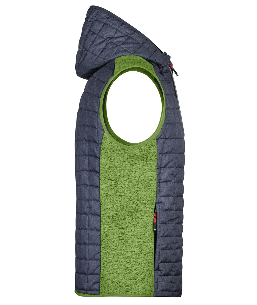 Soft, warm and easy care fabric in melange look Front, back and hood in quilted diamond pattern Hood adjustable on the inside Full-length under-panel zip 2 zipped side pockets 2 inner pockets JN767: waisted form 1/2 chest: 53 cm length from shoulder: 68 cm OEKO-TEX® Standard 100 (15.0.70467) quilted knitted fleece Hood