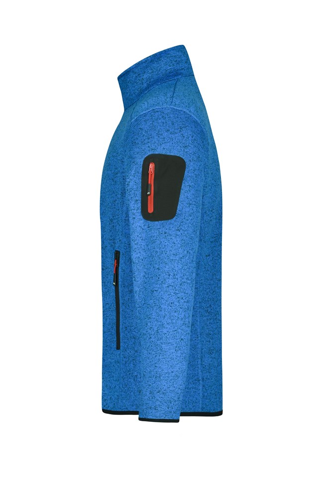 Soft, warm, easy care fabric in melange look Outside: knitted look, inside: roughened - soft and fluffy Figure-hugging division seams Zipped side pockets Contrasting border on hem and sleeves Trendy zipped sleeve pocket 1/2 chest: 54 cm 1/2 bottom width: 52 cm length from shoulder: 69 cm sleeve length: 65 cm OEKO-TEX® Standard 100 (15.0.70467) brushed