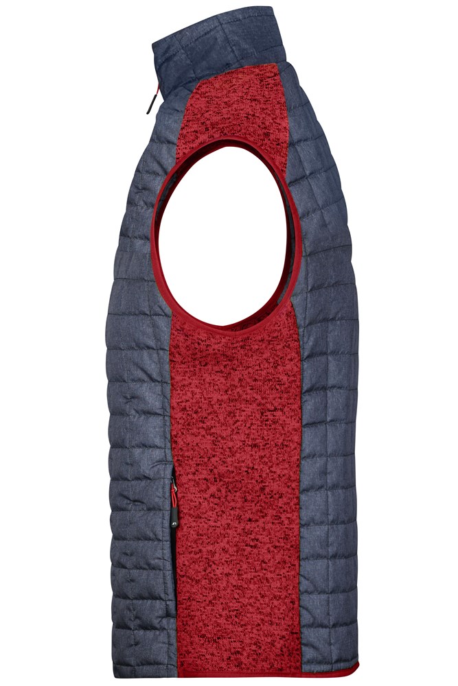 Soft, warm, easy care fabric in melange look Front, back and collar with backstitch seams in diamond pattern Full-length under-panel zip 2 zipped side pockets 2 inner pockets JN739: waisted cut 1/2 chest: 53 cm 1/2 bottom width: 51 cm length from shoulder: 68 cm OEKO-TEX® Standard 100 (15.0.70467) quilted knitted fleece stand-up collar