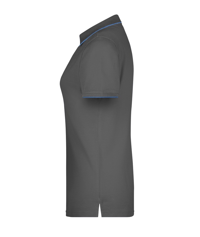 Knitted polo collar and sleeve cuffs with contrasting stripe