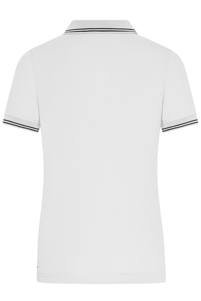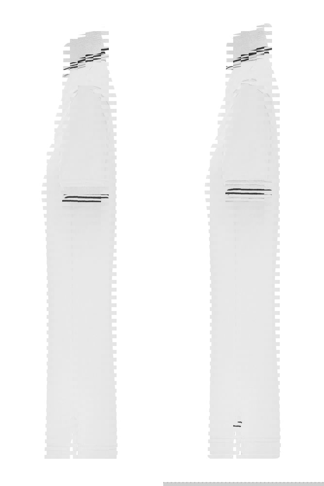 Knitted polo collar and sleeve-cuffs with contrasting stripes