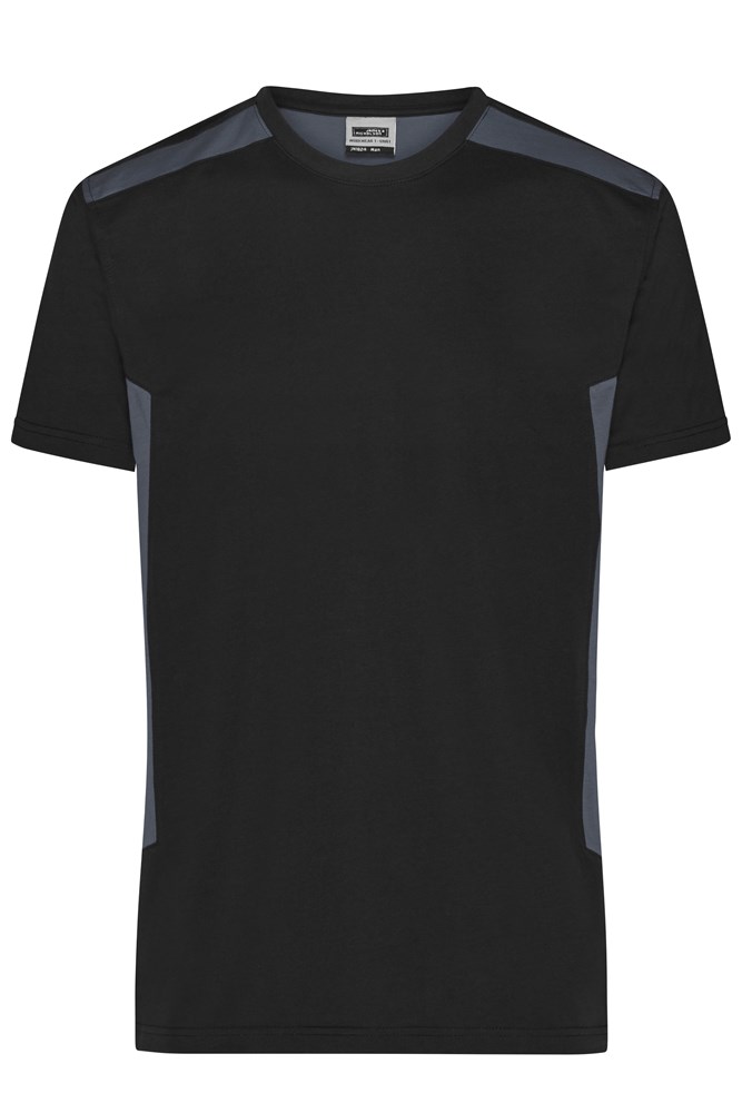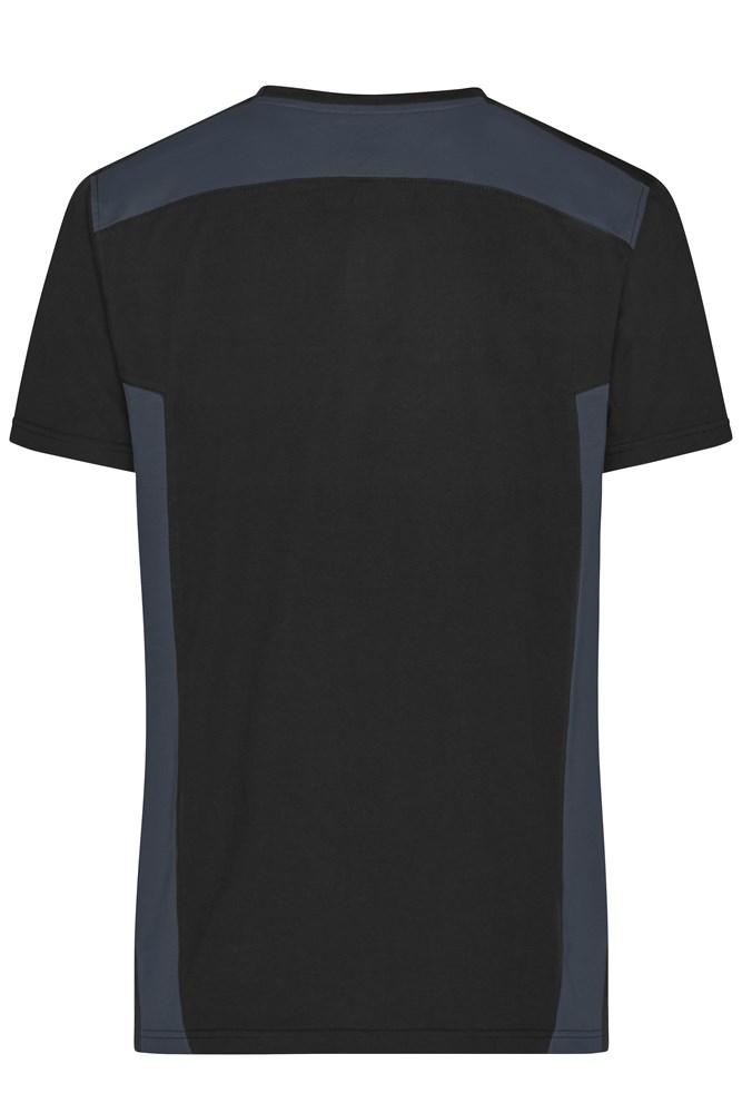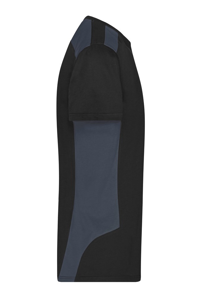 Material mix of combed ring-spun organic cotton and recycled polyester for optimum shape retention and washing resistance Contrasting insets on the side and shoulder Neck band with elastane, neck tape Washable at 60°C, suitable for tumble-drying 1/2 chest: 52 cm length from shoulder: 72 cm sleeve length: 20 cm Work-Level: STRONG OEKO-TEX® Standard 100 (25.HDE.51239) Plus size Up to 6XL Washing Temperature 60°C Organic Cotton OCS Standard blended GRS Standard