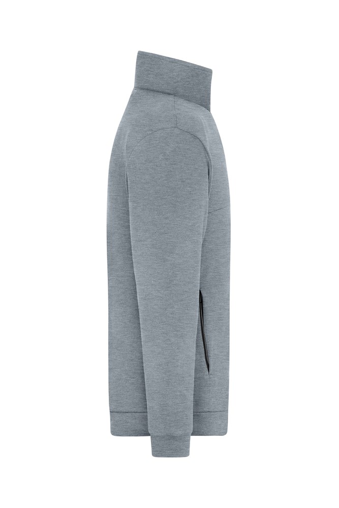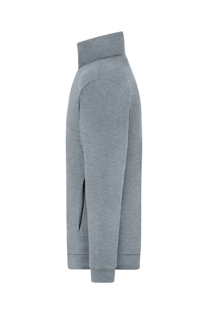Shape-retaining interlock of cotton and polyester with elasthane Full-length zip, stand-up collar 2 concealed zipped side pockets, 2 inner pockets Waistband and sleevebands 1/2 chest: 52 cm 1/2 bottom width: 46 cm length from shoulder: 70 cm sleeve length: 65 cm OEKO-TEX® Standard 100 (15.0.70467) stand-up collar
