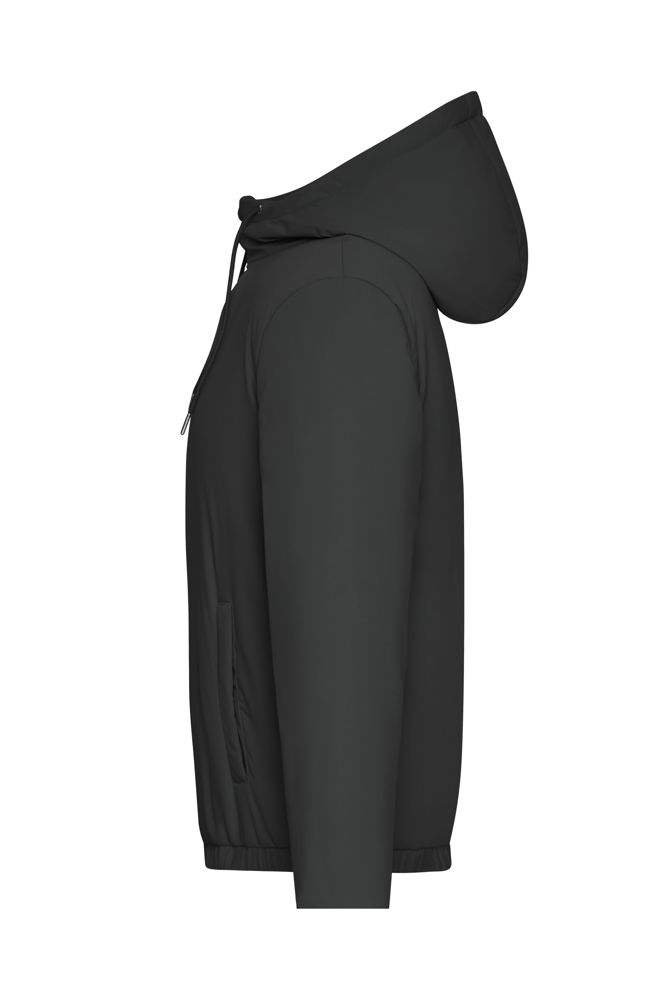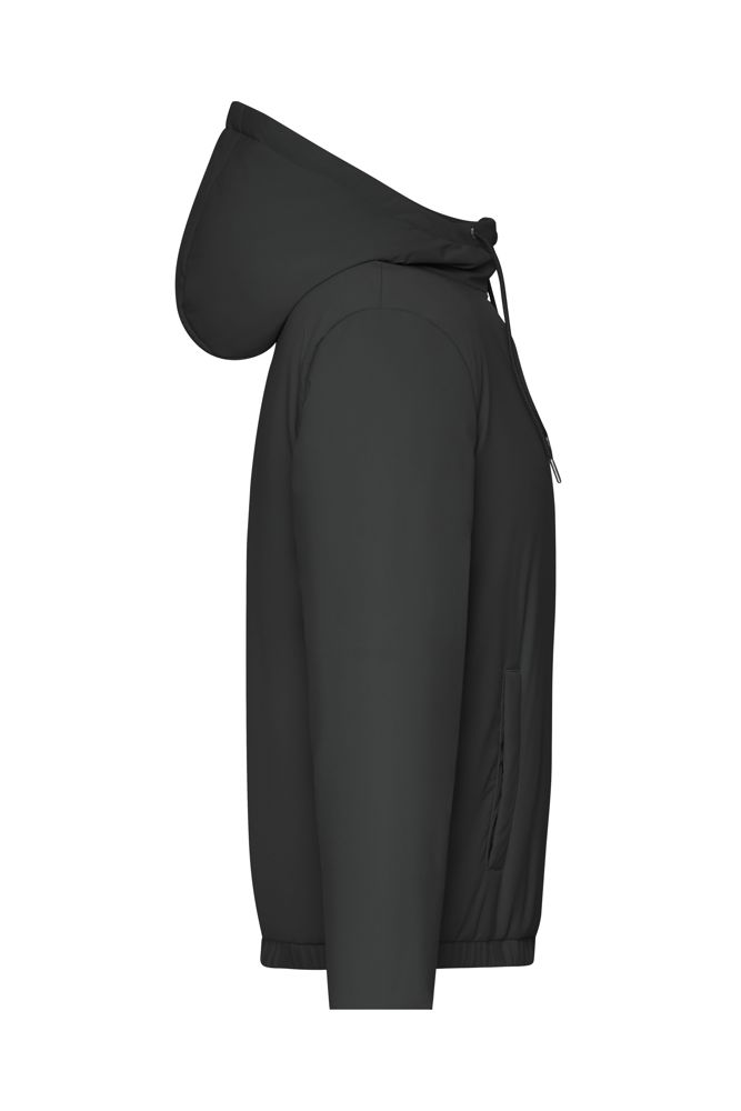 Comfortable to wear thanks to lightweight material and soft Sugenro padding (recycled) Water- and dirt repellent Attached hood with drawstring Elasticated waistband and cuffs 2 side pockets with press stud fastenor 1 inner pocket with zip Zip at the back 1/2 chest: 51 cm length from shoulder: 63 cm sleeve length: 62 cm OEKO-TEX® Standard 100 (25.HDE.51239) padded GRS Standard Sugenro® GRS Insulation Hood