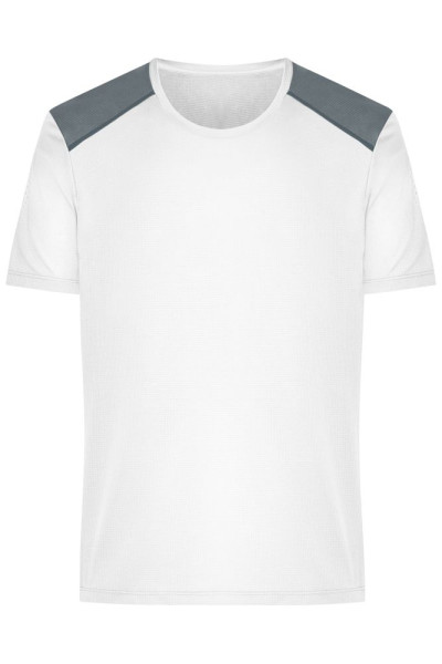 Reflective print on the back above the hem and on the sleeves at upper arm height (not PPE)