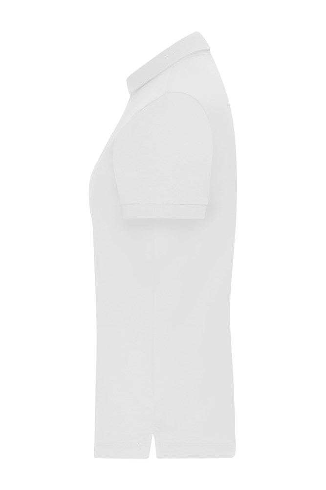 High-quality single jersey of mercerized, combed ring-spun cotton Polo collar: Upper collar: knitted fabric, lower collar: woven fabric Knitted cuffs, side slits 5 buttons in colour titan for all colours Waisted 1/2 chest: 44 cm 1/2 waist width: 41 cm 1/2 bottom width: 44 cm length from shoulder: 62 cm sleeve length: 17 cm mercerized cotton cotton