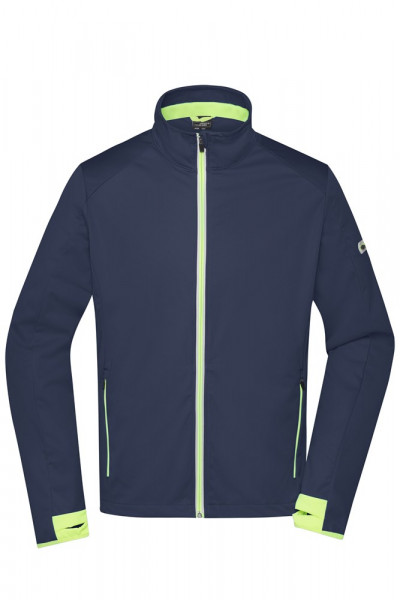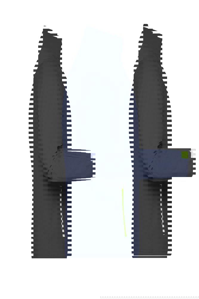Light, elastic 3-layer functional fabric with TPU-membrane Wind and water repellent (5,000 mm water column) Breathable and permeable to water vapour (5,000 g/m²/24h) Non-taped seams Full-length under-panel, fashionable reflective front zip with chin protection 2 zipped side pockets, 2 inner pockets Stand-up collar Sleeve-pocket and back with fashionable reflective print Elastic band on sleeves with thumb loop Extended back JN1125: waisted 1/2 chest: 54 cm 1/2 bottom width: 50 cm front length from shoulder: 67 cm length back from shoulder: 71 cm sleeve length: 68,50 cm OEKO-TEX® Standard 100 (15.0.70467) Softshell Breathable-Permeable to water vapour Water column from 1.500 mm Water column from 2.000 mm Water column from 3.000 mm Water column from 5.000 mm