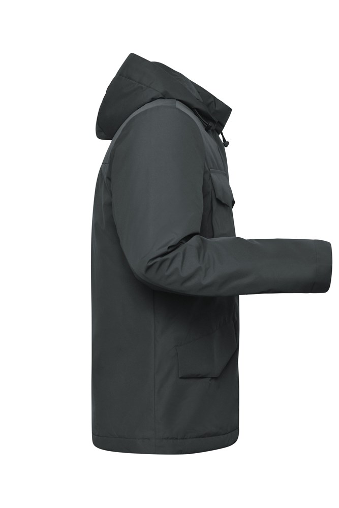 2 front pockets, 2 sewn-on breast pockets, 1 zipped inner pocket