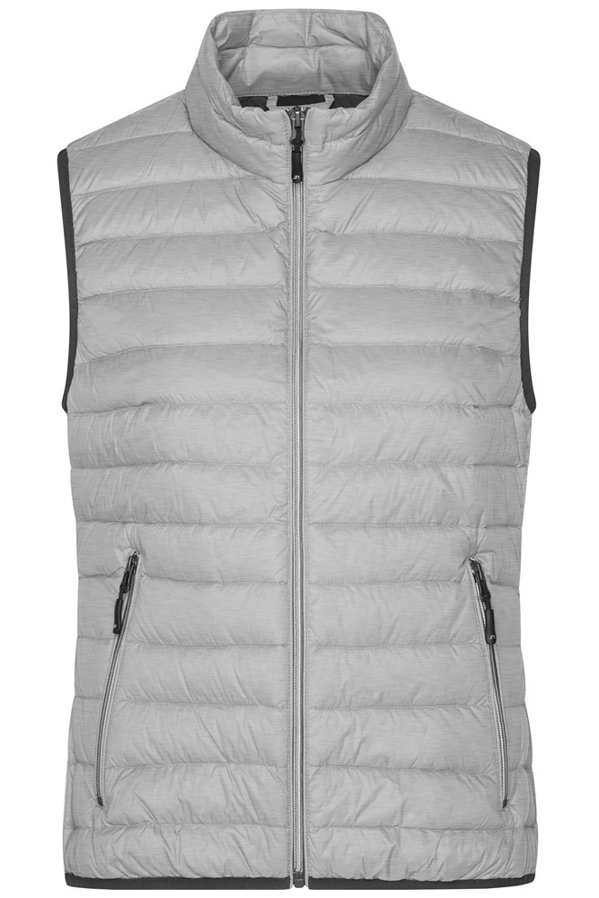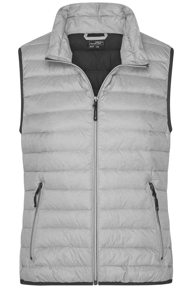 Soft, light, wind- and water-repellent fabric Inner lining and zips in contrasting colour Arm lines and waistband with contrasting trimming 2 zipped side pockets JN1137: waisted form 1/2 chest: 48 cm 1/2 waist width: 43 cm 1/2 bottom width: 46 cm length from shoulder: 61 cm Downs quilted wind- and water-repellent stand-up collar