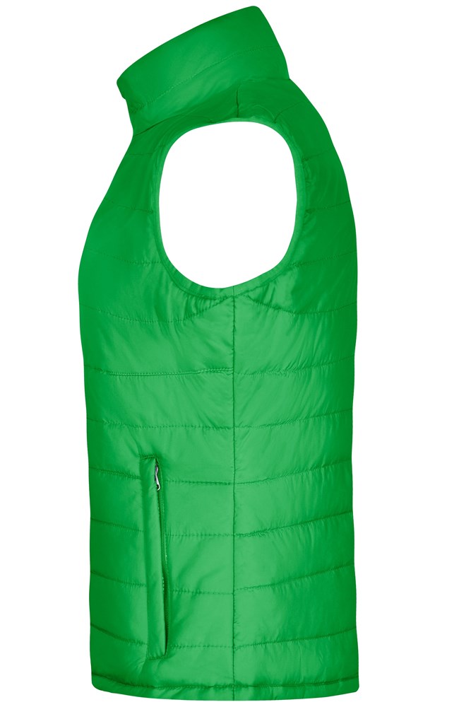 Wind- and water-repellent fabric made of polyamide Stand-up collar, under-panel zip with chin protection 2 zipped side pockets Elastic sleeve cuffs Zip for decoration at the back JN1135: waisted 1/2 chest: 53 cm 1/2 waist width: 48 cm 1/2 bottom width: 53 cm length from shoulder: 64 cm padded quilted wind- and water-repellent stand-up collar