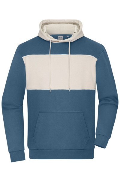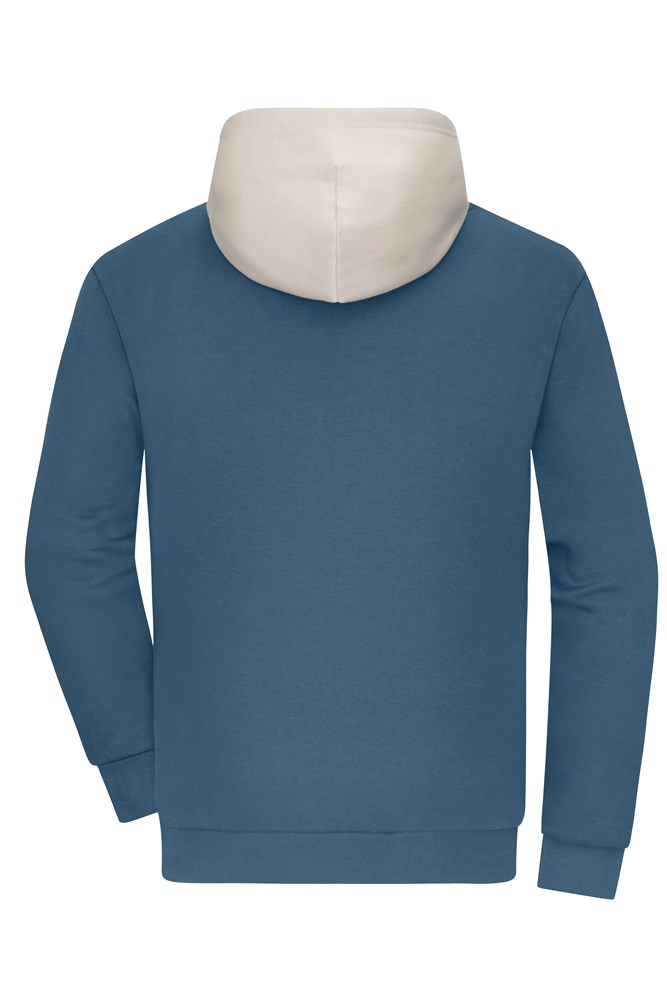 High-quality sweat fabric with roughened inside Material mix of combed, ring-spun organic cotton and recycled polyester Two-layer hood with metal eyelets, cord with metal ends Contrasting-coloured block insert with piping at the front Cuffs and waistband with elastane 1/2 chest: 51 cm length from shoulder: 66 cm front length from shoulder: 0 cm length back from shoulder: 0 cm sleeve length: 61 cm OEKO-TEX® Standard 100 (15.0.70467) Organic Cotton OCS Standard blended RCS blended Hood