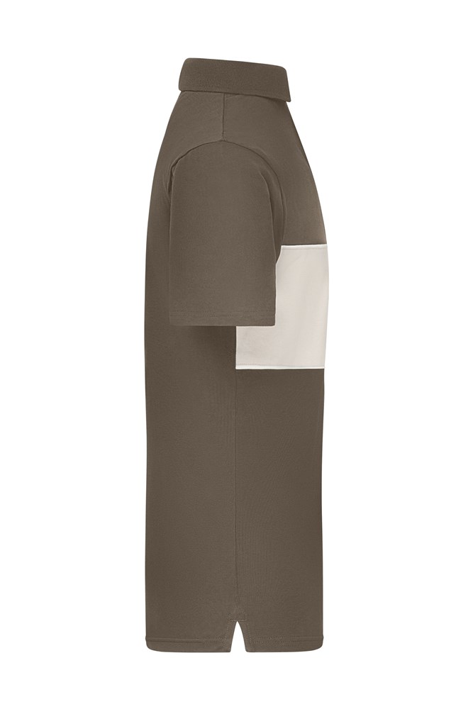 Fine piqué of combed, ring-spun organic cotton Contrasting-coloured block insert with piping at the front Knitted polo collar and cuffs 2 buttons tone in tone Side slits 1/2 chest: 44 cm 1/2 bottom width: 44 cm length from shoulder: 71 cm sleeve length: 21,50 cm OEKO-TEX® Standard 100 (15.0.70467) short OCS Standard Organic Cotton