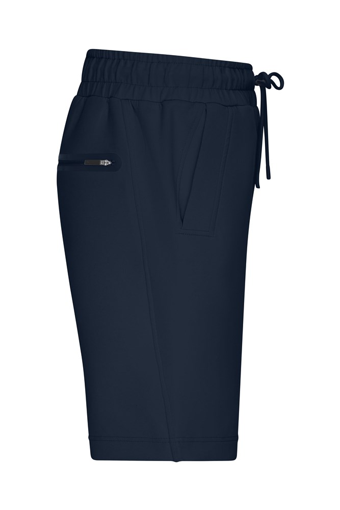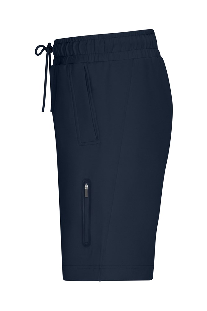 High-quality interlock fabric Pleasant mix of organic cotton recycled polyester and elastane Technical details 2 side pockets, 1 zipped back pocket, 1 zipped front pocket on the right Zipped pockets bordered with fashionable tape 1/2 waistband relaxed: 41 cm 1/2 hip: 53 cm inseam: 23,50 cm length of side: 53 cm OEKO-TEX® Standard 100 (25.HDE.51239) short Organic Cotton OCS Standard blended Mesh RCS blended