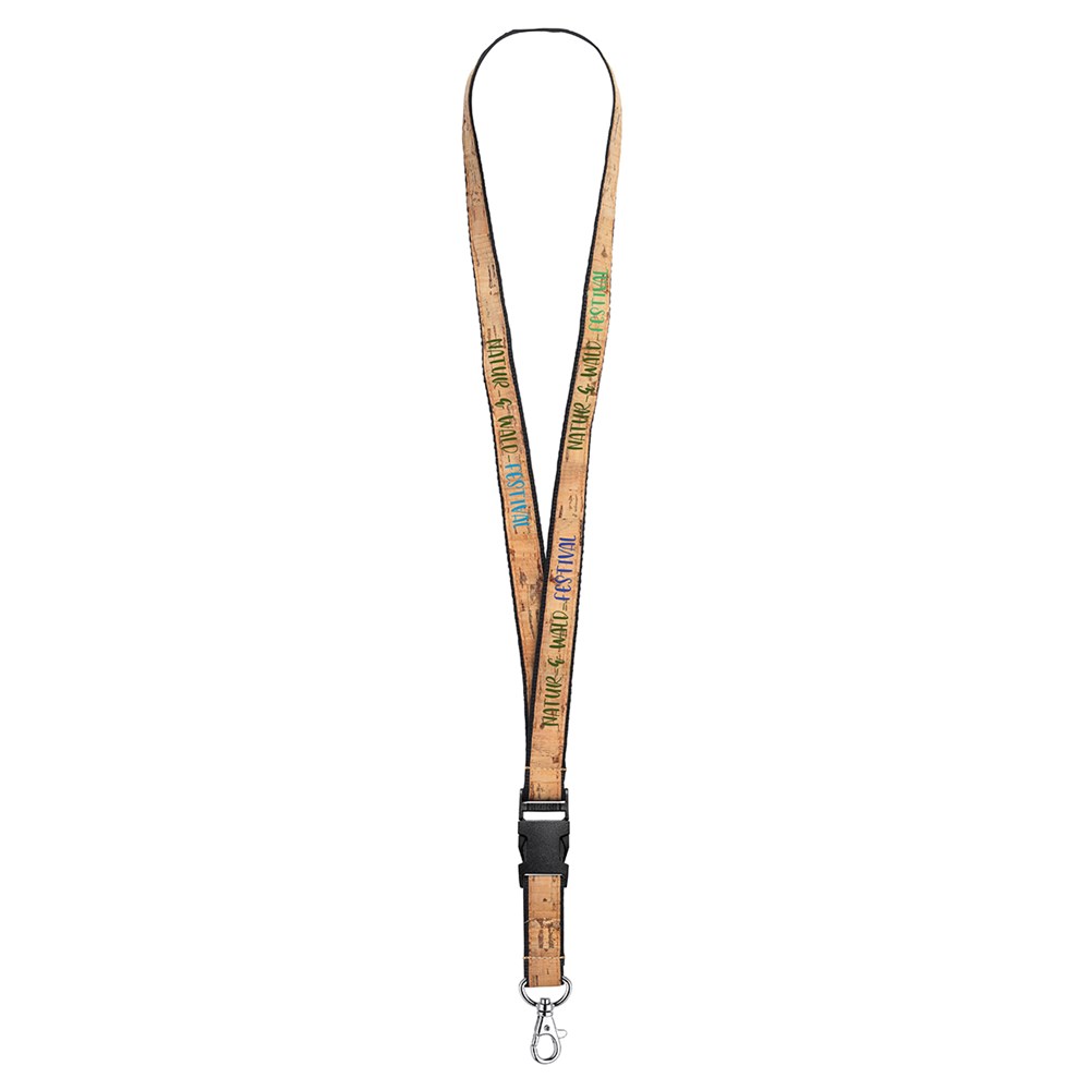 Flat-woven polyester with cork strap with snap hook and snap fastener more