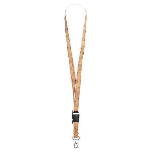 Flat-woven polyester with cork strap with snap hook and snap fastener