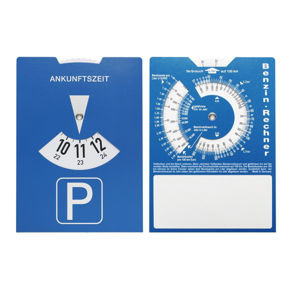 Carton parking disc with petrol calculator