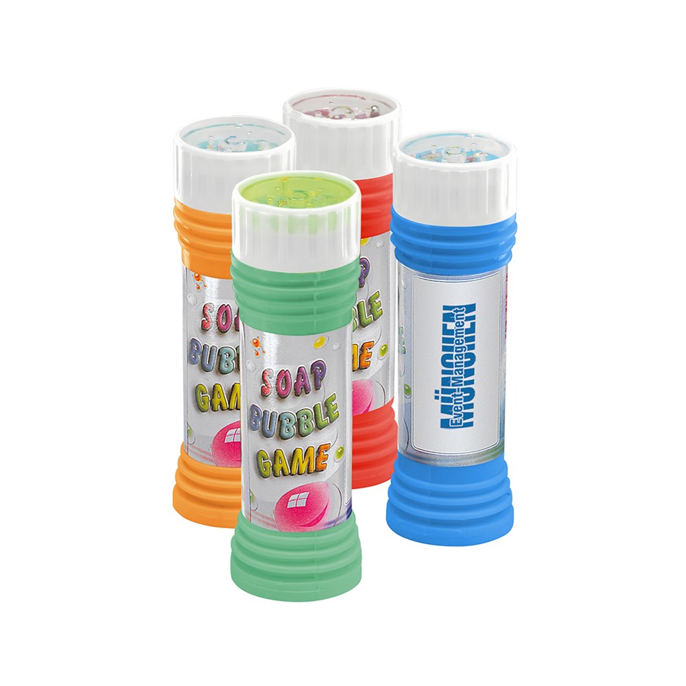 Bottle approx. 50 ml lye, puzzle game in the lid, standard sticker with space for advertising imprint