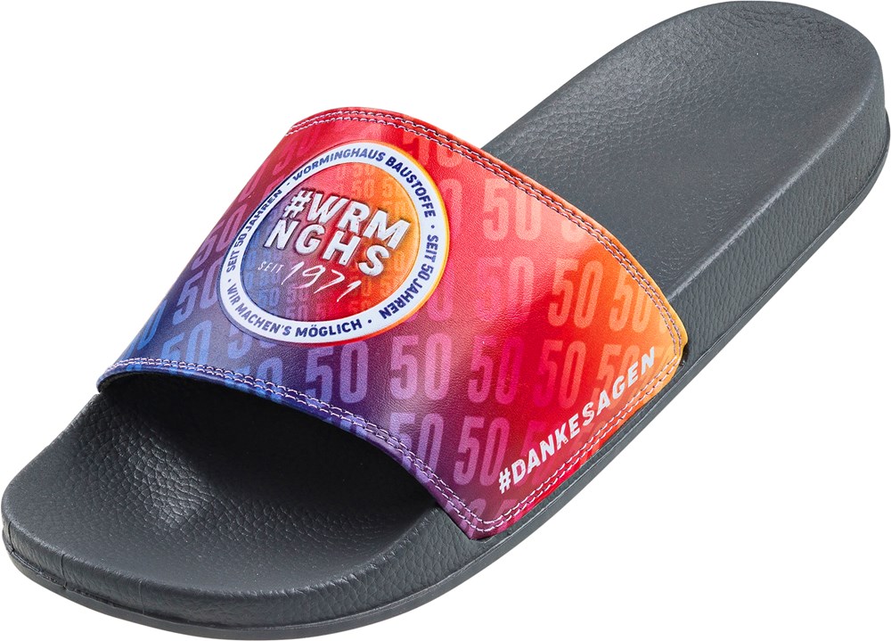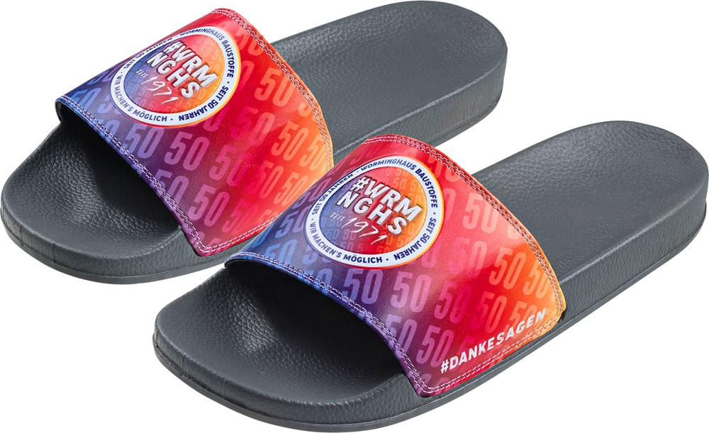Our customizable flip-flops are not only comfortable and durable everyday companions, but also a real eye-catcher for companies, clubs and private individuals. Whether as an employee gift, giveaway at trade fairs, at company events or as merchandise for your club or brand - these flip-flops are perfect for any occasion.