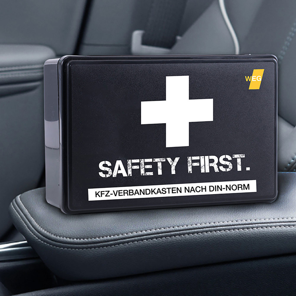 Safe on the road! The compact vehicle first aid kit complies with legal guidelines and is a robust, durable companion. Always ready to hand in an emergency, the box can also be refilled and scores points with its large advertising space. Also available in other colors.