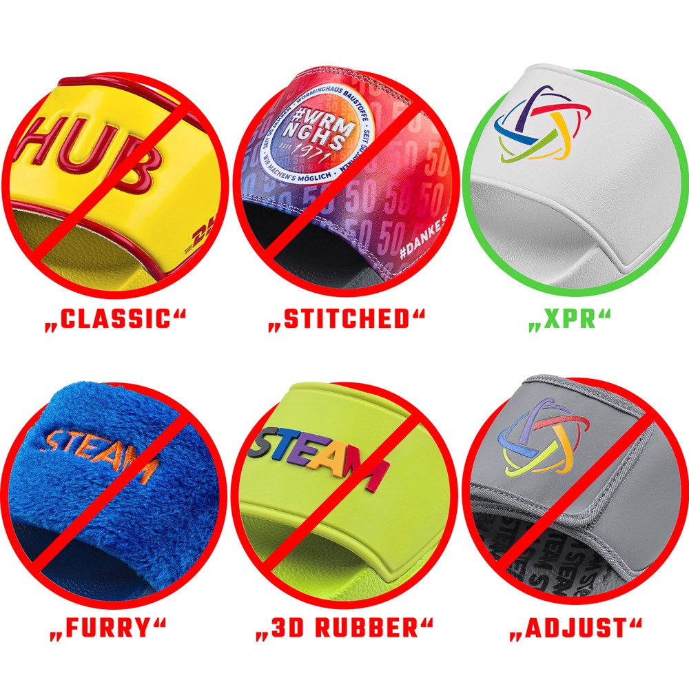 Experience our XPR flip-flops. The soft sole and shoe bridge made of durable PVC are comfortable and particularly hard-wearing. With this model, the shoe bridge can be customized with your logo using DTF printing. This model impresses with its short delivery time from 48 hours in the express version (deviations possible depending on the season).