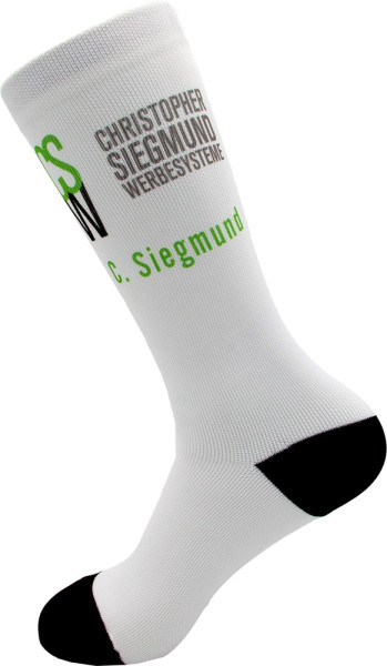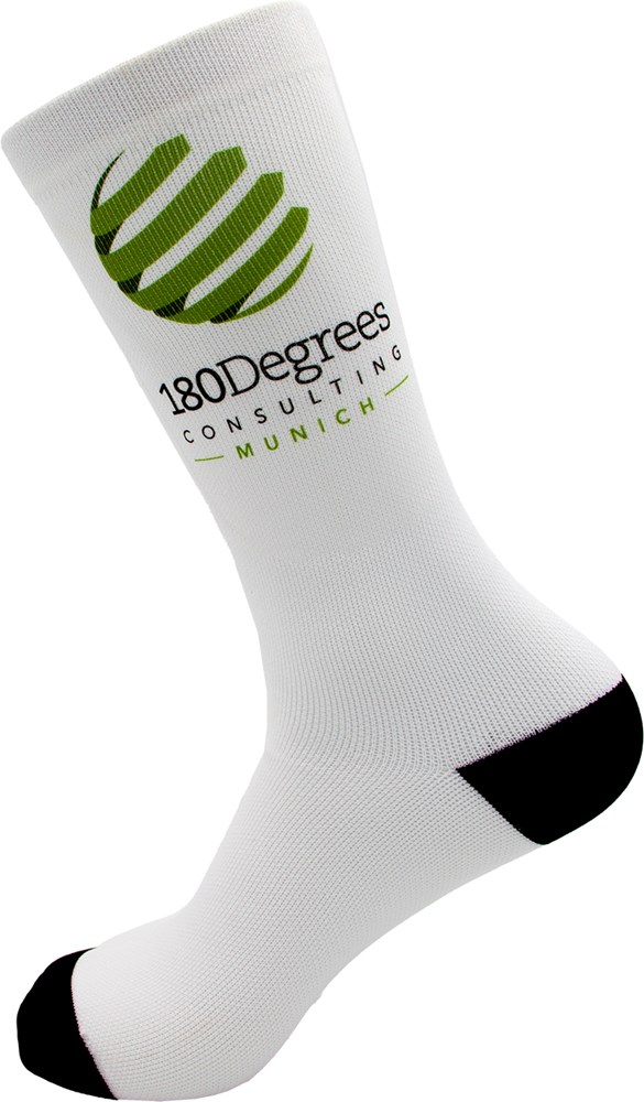 Experience the highest print quality with our Business Plain business and promotional socks. The soft socks made of polyester fabric are the ideal companion for events and corporate functions. With this model, your desired design is finished with your logo in the leg area using sublimation printing. The high-quality print is available in express production in as little as five working days.