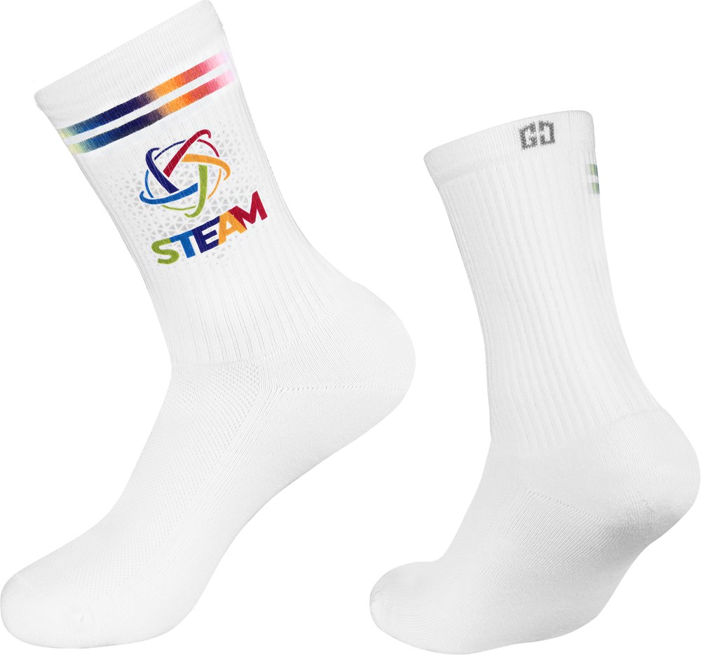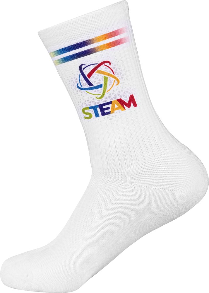 Experience the highest print quality with our Sport Tennis sports and functional socks. The soft cotton sock, with a typical tennis sock profile in the leg area, is the ideal companion for sportspeople and athletes. With this model, your desired design is finished with your logo in the leg area using sublimation printing. The high-quality print is available in express production in as little as five working days.