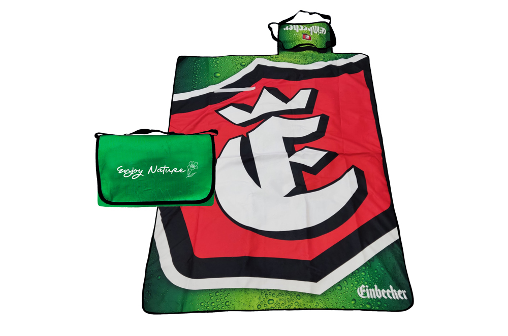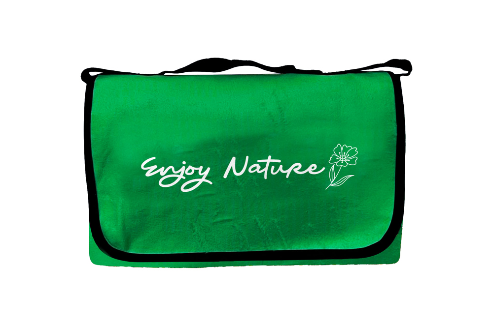 Enjoy life outside with the easy to carry picnic blanket. Full-color cmyk print with colored waterproof backside. Including hangtag and woven label of Repreve.