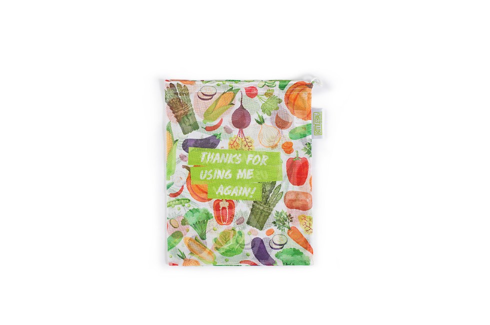 The BottleBag Veggie is a handy, 100% recycled PET bag for storing fruit and vegetables. It is washable and reusable. Avoid unnecessary disposable bags in the supermarket.