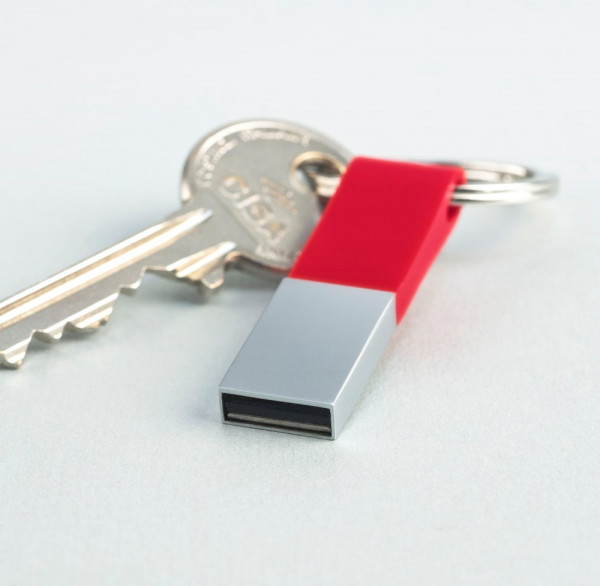 USB Flash drive with silicon top part. Comes with a keyring.