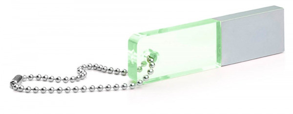 Slim aluminium USB flash drive with acrylic light up top part. The top part light up when the flash drive is inserted in a usb portal.