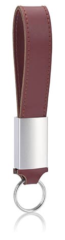 USB flash drive with key ring, genuine leather strap and metal plate.
