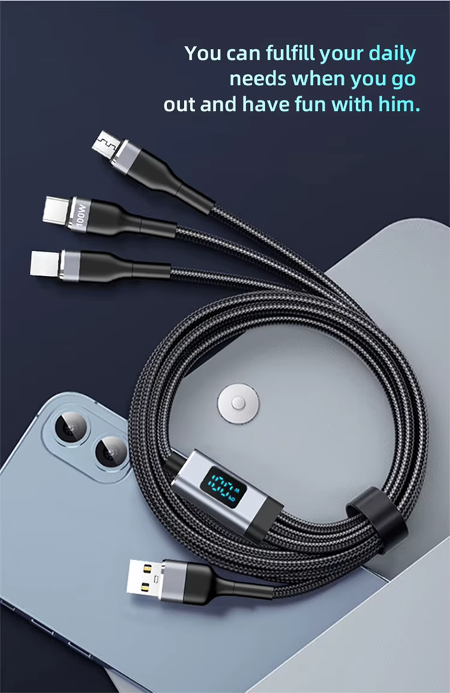 Compatible with Android, iOS, and Type-C: Suitable for nearly all devices. Supports CarPlay and Data Transfer: Easy integration and reliable performance. Fast Charging (3A, 100W): Powerful charging for optimal efficiency. Braided Nylon Cable: Durable, flexible, and resistant to wear and tear.