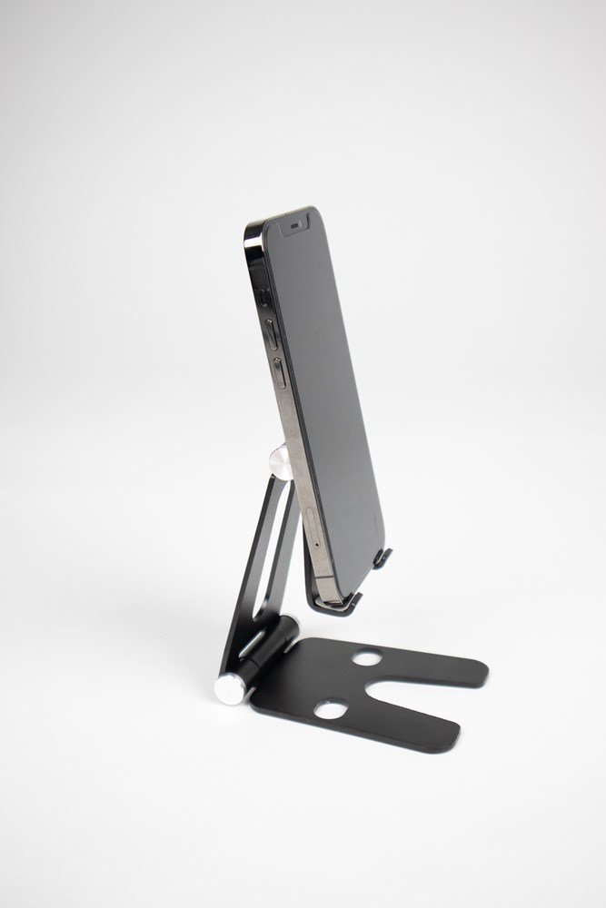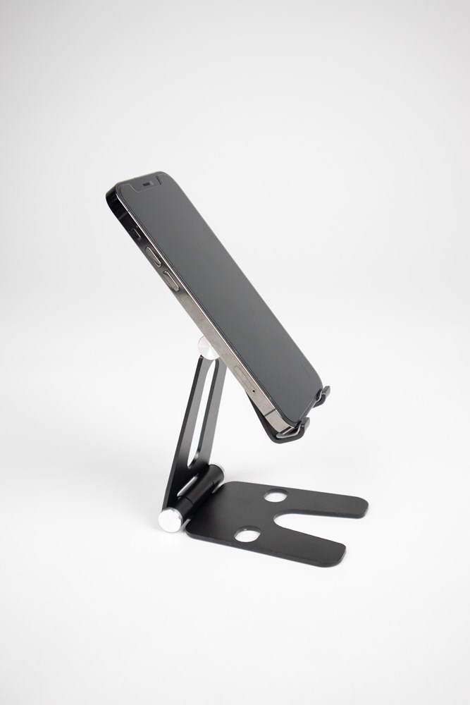 Magic Phone holder made from aluminum alloy is your best assistant ever. Suitable for most smart phones from these days. Standard available in the colors black and silver, eventually on request we also have gold, red and rose gold. The product can be either engraved with your logo or text or printed in max 3 colors. In case our collection selection is not enough, you can have your own colors from just 2.000 pieces. Packed into a nice gift-box which is included into the price.
