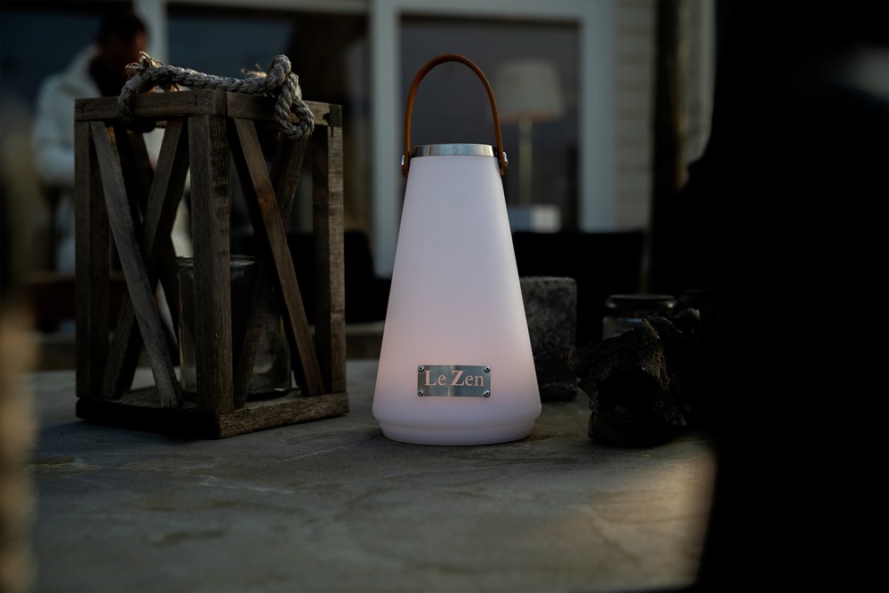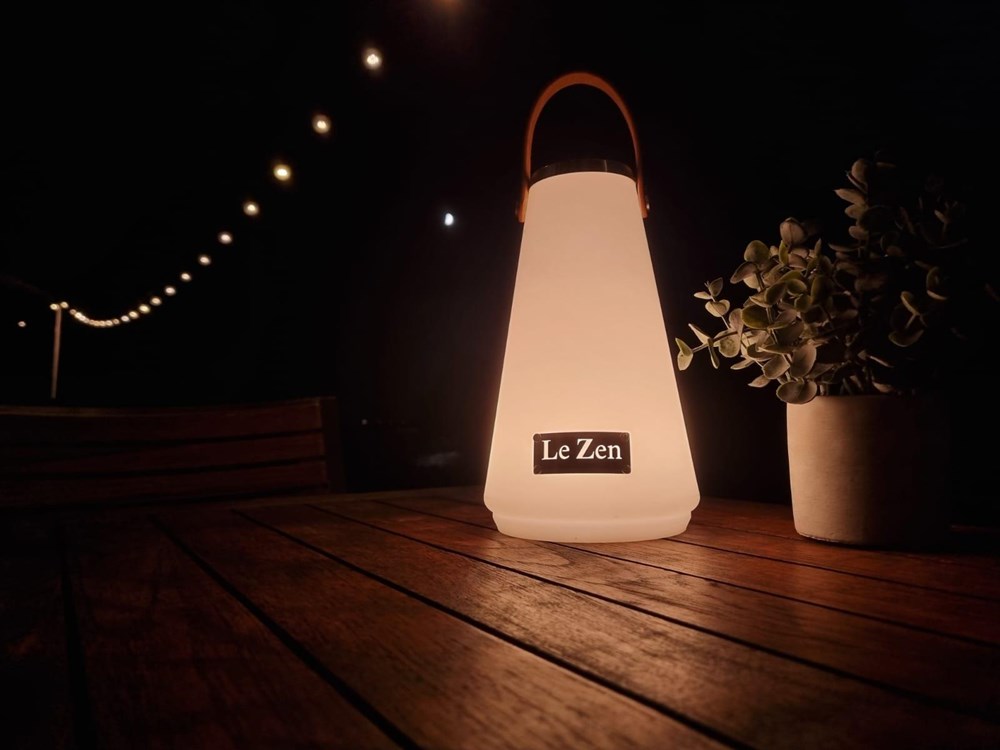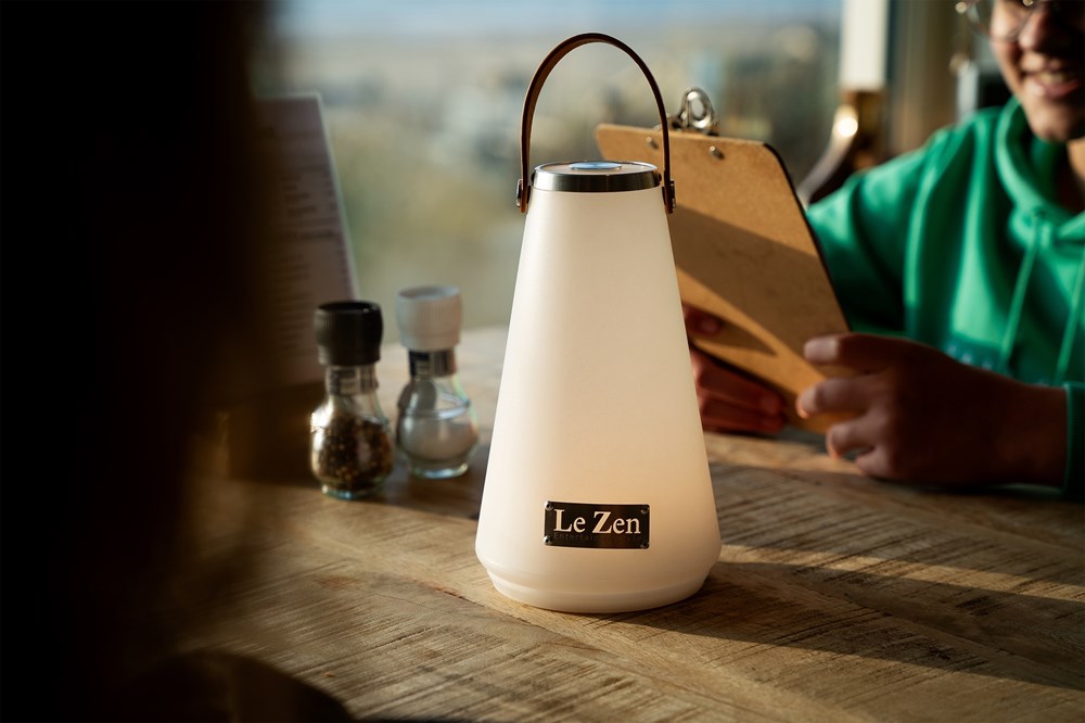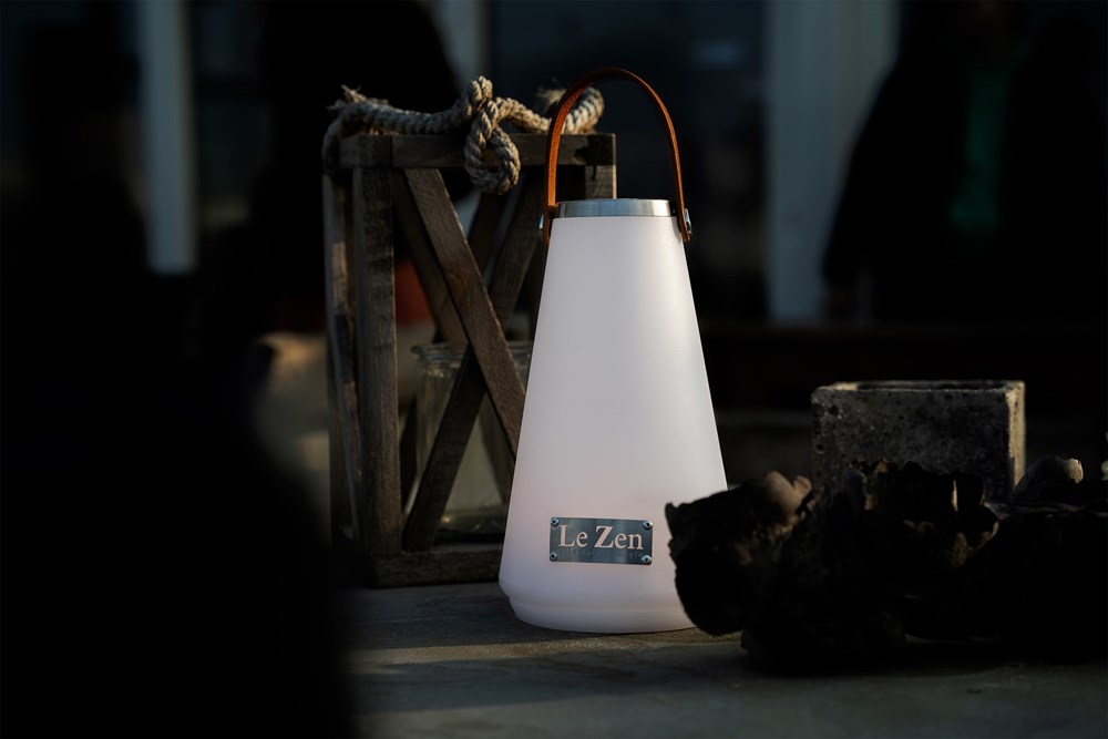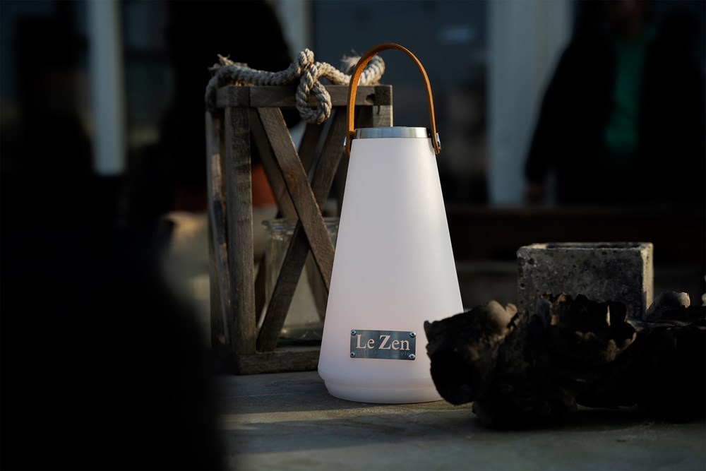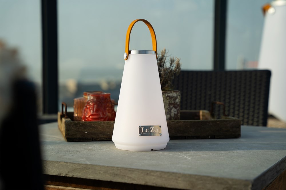 Le Zen continues to develop with new products. We would like to introduce to you the Le Zen LUX, an LED lamp with 4 different positions to always create the right atmosphere wherever you are. Once charged (2,000 mAh rechargeable battery) via the supplied DC5V A1 with USB cable, you can enjoy the Le Zen LUX for at least 8 hours. Because the lamp is waterproof (IP54), it can also remain outside during a rain shower and given the high quality, the lamp can also take a beating and does not blow off the table with the slightest gust of wind. The vegan leather strap comes standard with the Le Zen logo, but can optionally be provided with your own logo or text from 50 pieces. The Le Zen Lux can be used on holiday, in the garden, in the house and can be placed or hung on the vegan leather strap, in short, enjoy the summer!